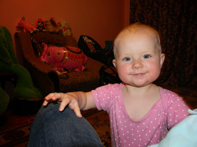 Трохи ми погралися! І Віталіну десь в годин 10 почало клонити на сон! Сьогодні нам не випало покупатися, бо ванна була окупована бабою з дідом, тому ми поїли кашку, і пішли лягати! Віталіна заснула десь пів 11-ої. Я ще з нею трохи лежала, бо вона зовсім не спокійно спала, і тут десь за 20 хв 12-та, сюрприз... Віталіна просинається :) назад вложити мені її не вдалося, тому ми пішли знов у зал!!! Мені ще треба було зробити деяку роботу в Інтернеті, а тим часом Віталіна собі веселилась, гралася іграшками і бігала босячком по залу!!!