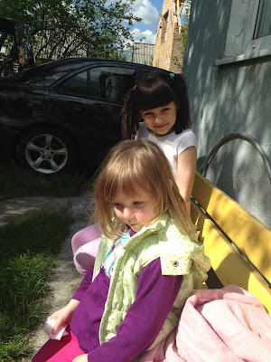 Діти гралися іграшками, тато грав на гітарі, потім ми з Сонею і Віталіною вчили Соніну англійську :) і пили чай!
